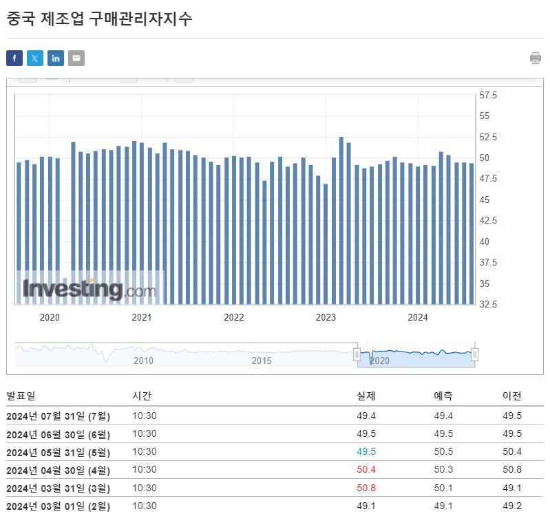 구매관리자지수(PMI, Purchasing Managers' Index)은 경제 활동의 상태를 반영하는 중요한 지표입니다. PMI 지표가 악화되면 이는 일반적으로 경제 성장 둔화 또는 경기 침체의 신호로 해석될 수 있습니다.