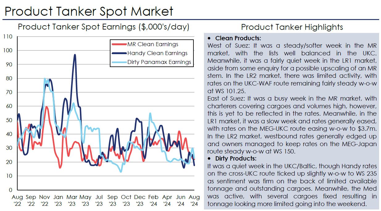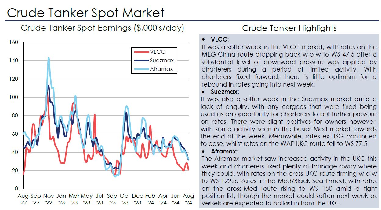 CRUDE, PRODUCT TANEKR 운임은 하락 중.