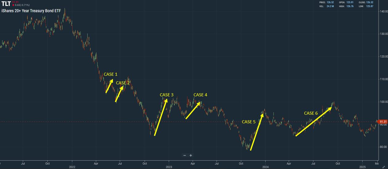 텀프리미엄 하락 기간에는 TLT가 S&P500, 나스닥 지수보다 수익률이 좋을 가능성이 높다.