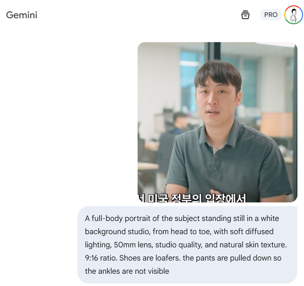 유튜브 캡쳐와 구글의 나노바나나 프로를 사용해서 전신사진을 제작해봅니다.