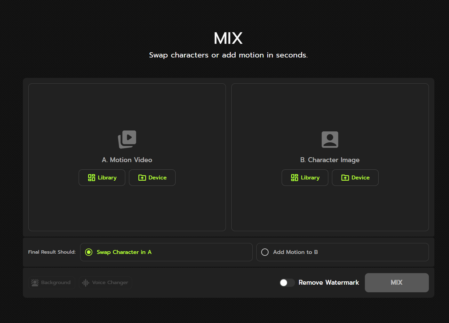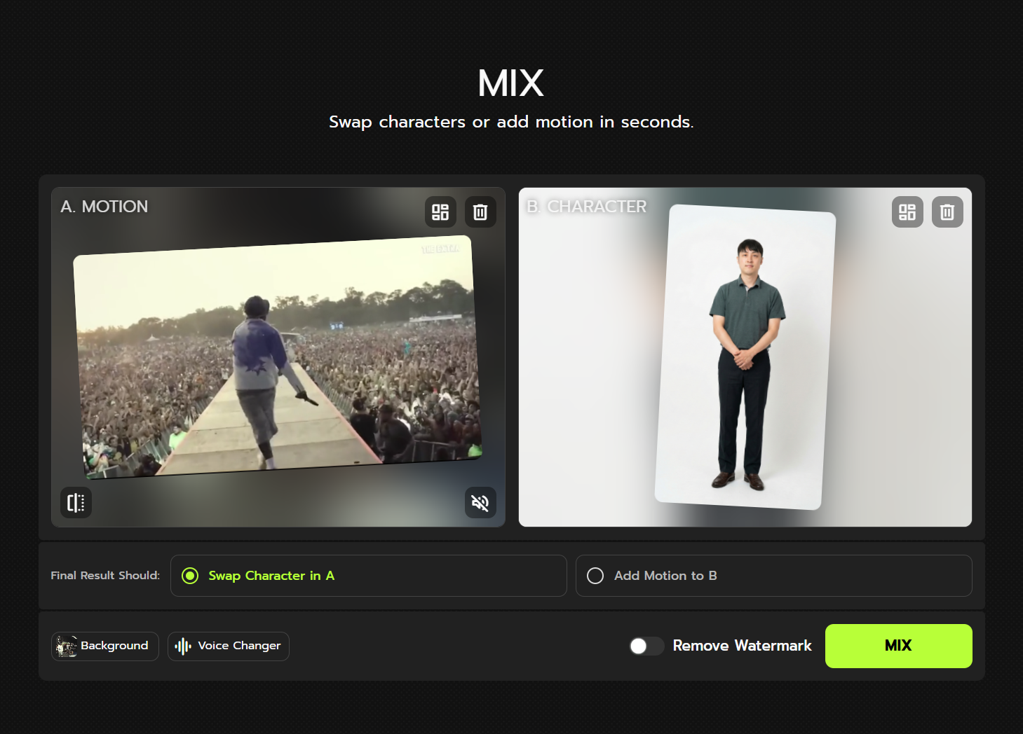 이렇게 원본 영상과 바꾸고 싶은 캐릭터 이미지를 업로드 하면..