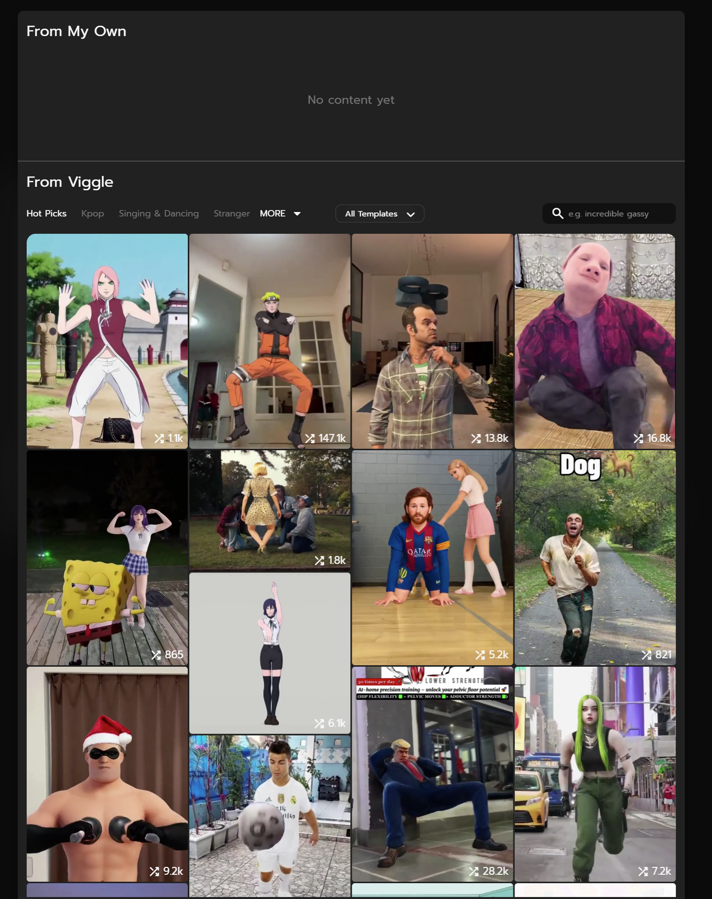 AI로 영상 만들기는 여러 툴이 있지만 제가 만든 종류의 영상은 워터마크에서도 알 수 있듯 Viggle 이라는 ai로 제작하였습니다.