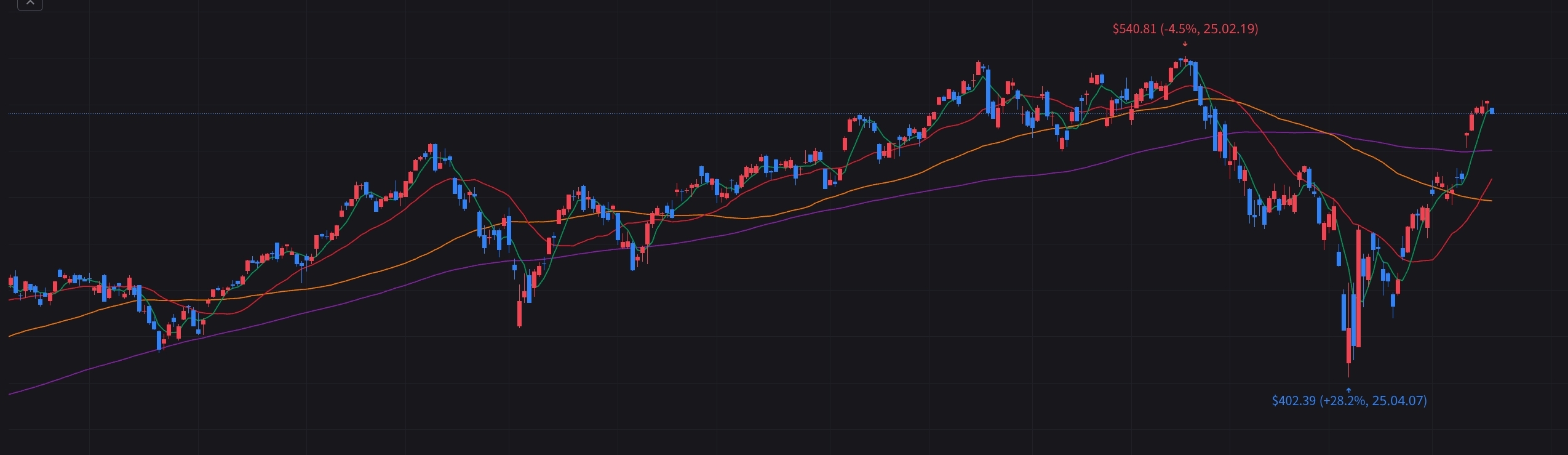 현 상황에서 나스닥은 고점대비 -4.5%, 저점대비 약 +30% 정도를 말아올린 상황임.