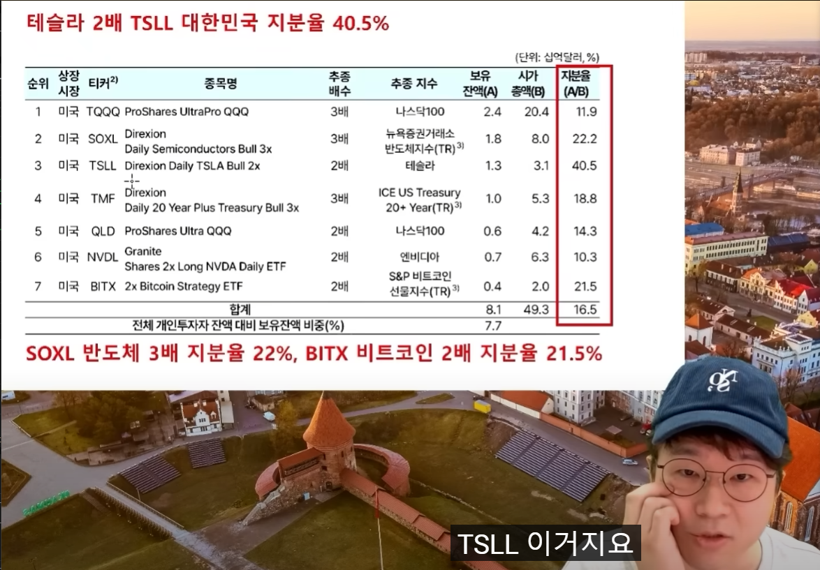 TSLL 이걸 한국인이 40% 들고있어. 아니 테슬라를 그냥 사면 되지.