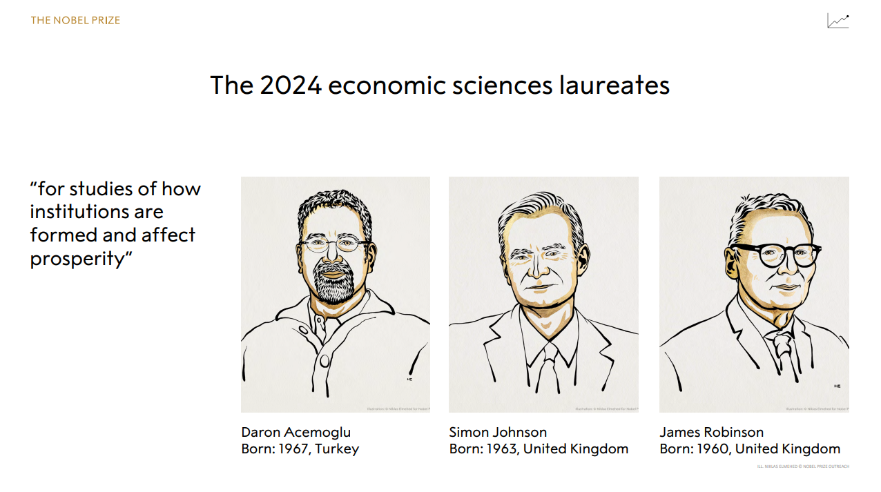 수상자들은 식민지화 당시 부유했던 지역들이 오늘날에는 가장 가난한 지역으로 전락한 반면, 당시 가난했던 지역들은 오늘날 더 번영하고 높은 생활 수준을 유지하고 있는 일명 '운명의 역전(Reversal of fortune)'이 일어났다는 것을 밝혀냈습니다. 유럽인들이 가난하고 인구가 적은 국가에 더 많이 정착하면서, 선진적인 통치와 법치가 인구에 혜택을 주게 되었습니다. 이는 정착민들이 머물며 열심히 일하고 새로운 나라에 투자하게 만드는 인센티브가 되었습니다. 더불어 수상자들은 명확한 인과 관계 또한 밝혀냈습니다. 엘리트를 위해 만들어지고 대중을 착취하는 제도는 장기적인 경제 성장을 저해하는 반면, 대중에게 혜택을 주기 위한 제도는 장기 성장에 유리합니다. 그렇기에 다시 돌아가 민주주의가 권위주의보다 더 경제성장을 하기 쉬운 것은 민주주의가 보다 포괄적인 제도로 많은 계층의 번영을 주기 때문인거죠. 그렇다면 여기서 포괄적인 제도가 더 번영을 제공한다면, 왜 엘리트들은 그러한 제도를 택하지 않을까요? 수상자들은 그것이 시민과 엘리트계층간의 신뢰가 부족하기 때문으로 보고 있습니다. 즉 시민들은 지금까지 엘리트층이 그들 이익만을 위해 행동해 왔기 때문에 그들이 약속하는 경제적 변화에 신뢰를 두지 않고, 엘리트의 경우 이러한 경제적 변화가 자칫하면 자신들이 손해를 볼 까 우려하기 때문에 시민들을 믿지 못한다는 것이죠.