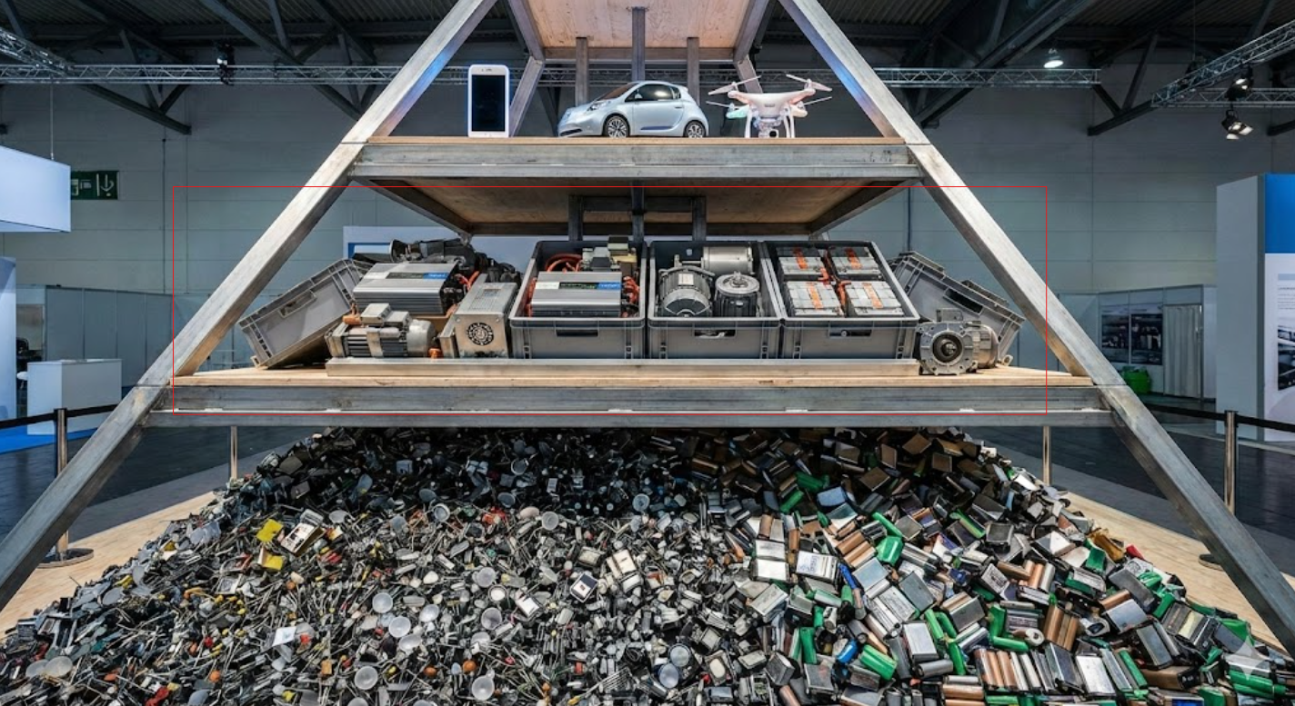 전기차는 내연기관 차량과 달리 여러 산업에 걸쳐 공유되는 부품과 디바이스 프리미티브를 많이 사용한다. 소비자 가전은 이 광범위하게 재사용 가능한 층 위에 구축됐고, 엄청난 규모로 생산되었다.