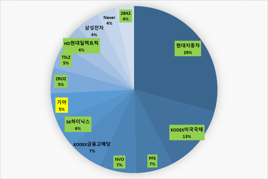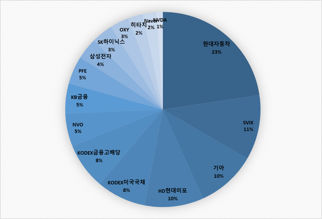 3) 비중확대 : 현대자동차, KODEX미국국채, PFE, NVO, 하이닉스, HD현대일렉트릭