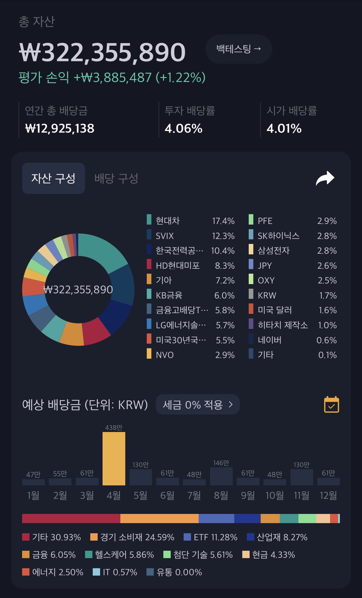 → 지금 방향성을 모르겠는 상황에서 risk 관리가 중요하다고 생각하는 타이밍이기에 대부분 하방이 막혀있다고 생각하는 종목들을 비중 확대하였다. PER/배당율 등 고려해서 더 떨어지면 더 살 자신이 있는 종목들.