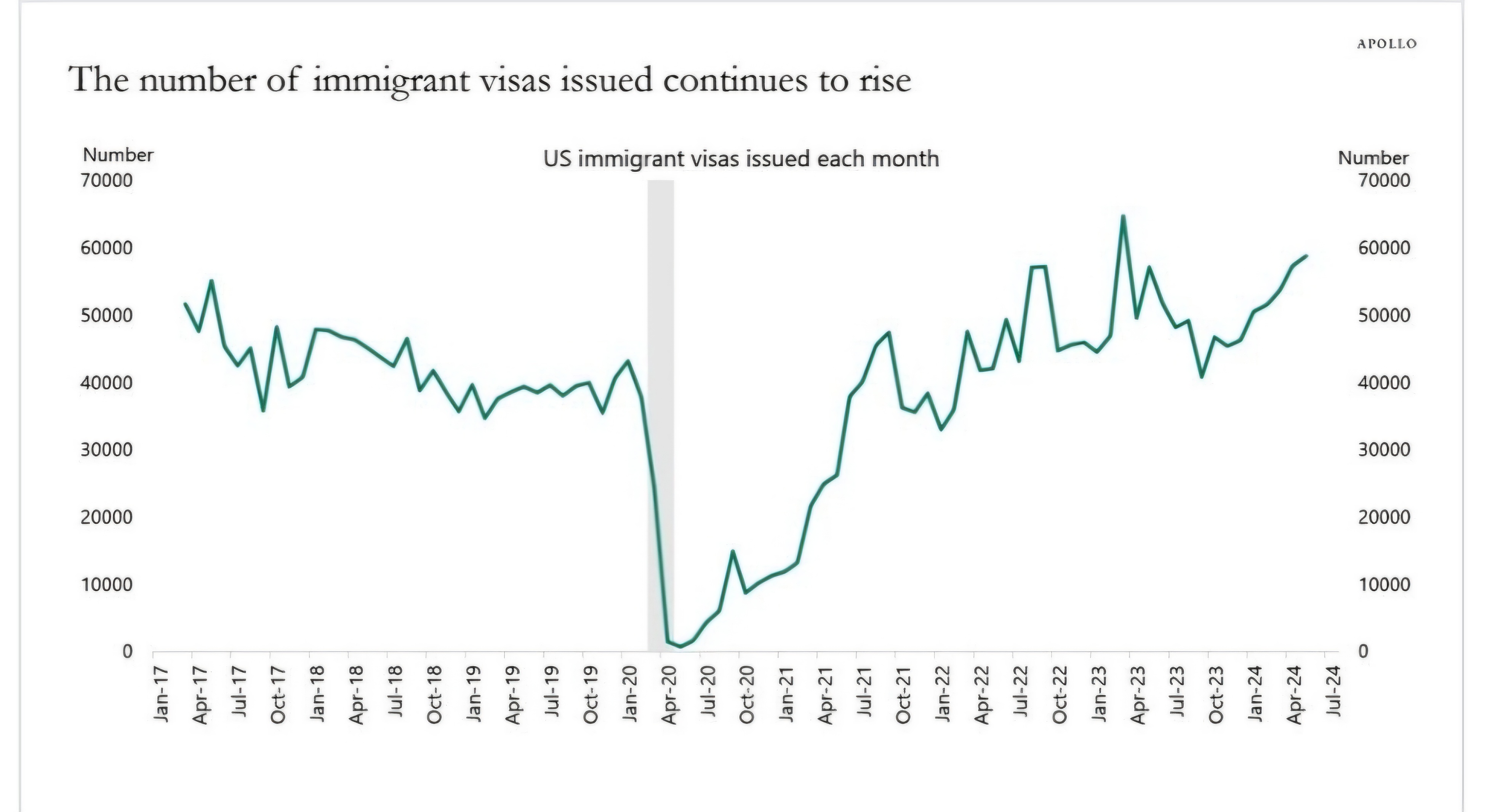 6. 이민 증가 추세가 계속되면서 매달 발급되는 이민자 비자의 수가 거의 기록적인 수준에 도달하고 있습니다.
