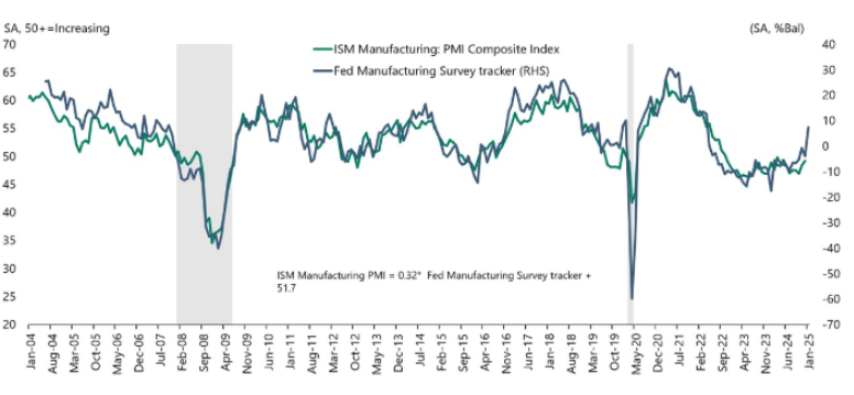 12. 지역 연준이 발표하는 제조업 지수와의 역사적 관계를 감안할 때, 전국 ISM 제조업 지수가 조만간 50을 넘어설 가능성이 큽니다.