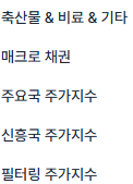 각각이 어떤 관계를 맺고 있는지, 어떤 의미를 지니는지를 하나씩 이야기하면 너무 길어질 것 같아서 나중에 주간 시장 둘러보기와 같은 시황 이야기 포스팅에서 가능하다면 다루어보도록 하겠습니다.