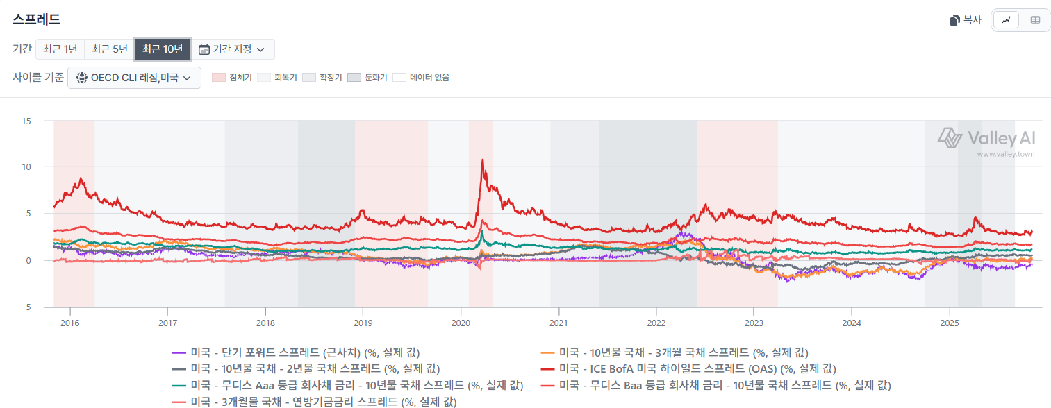 이 녀석은 미국의 온갖 스프레드를 섞어놓은 부분입니다. 그때그때 필요한 것들만 선택해서 보려고 이렇게 구현해놓았습니다.