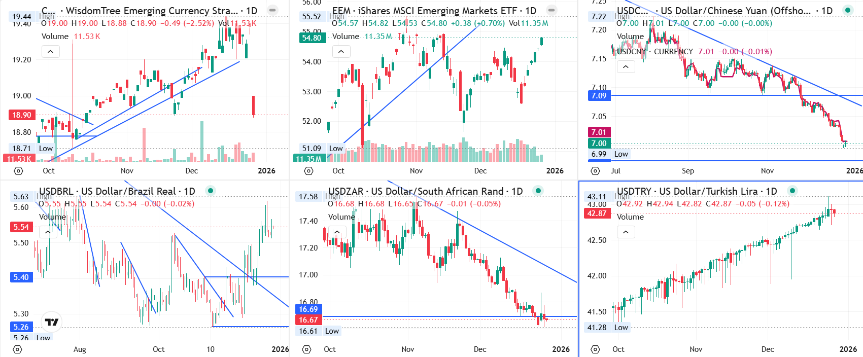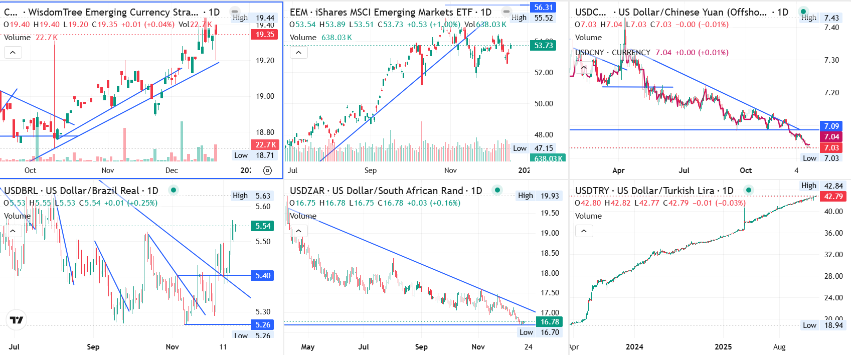 기본적으로 신흥국 통화는 달러 대비 약세를 보였으나 남아프리카공화국, 중국의 경우에는 달러 대비 강세를 보인 상황입니다.