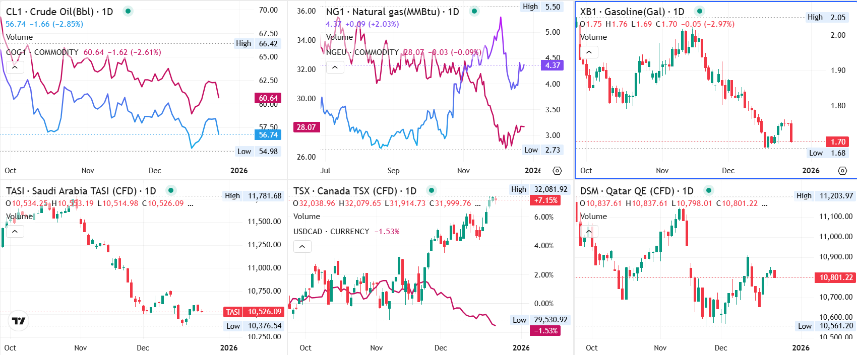 지난 주와 크게 차이가 나는 지점은 캐나다 주가지수의 조정, 미국-유럽 천연가스 괴리 축소 혹은 서로 다른 방향성 정도가 있겠습니다.