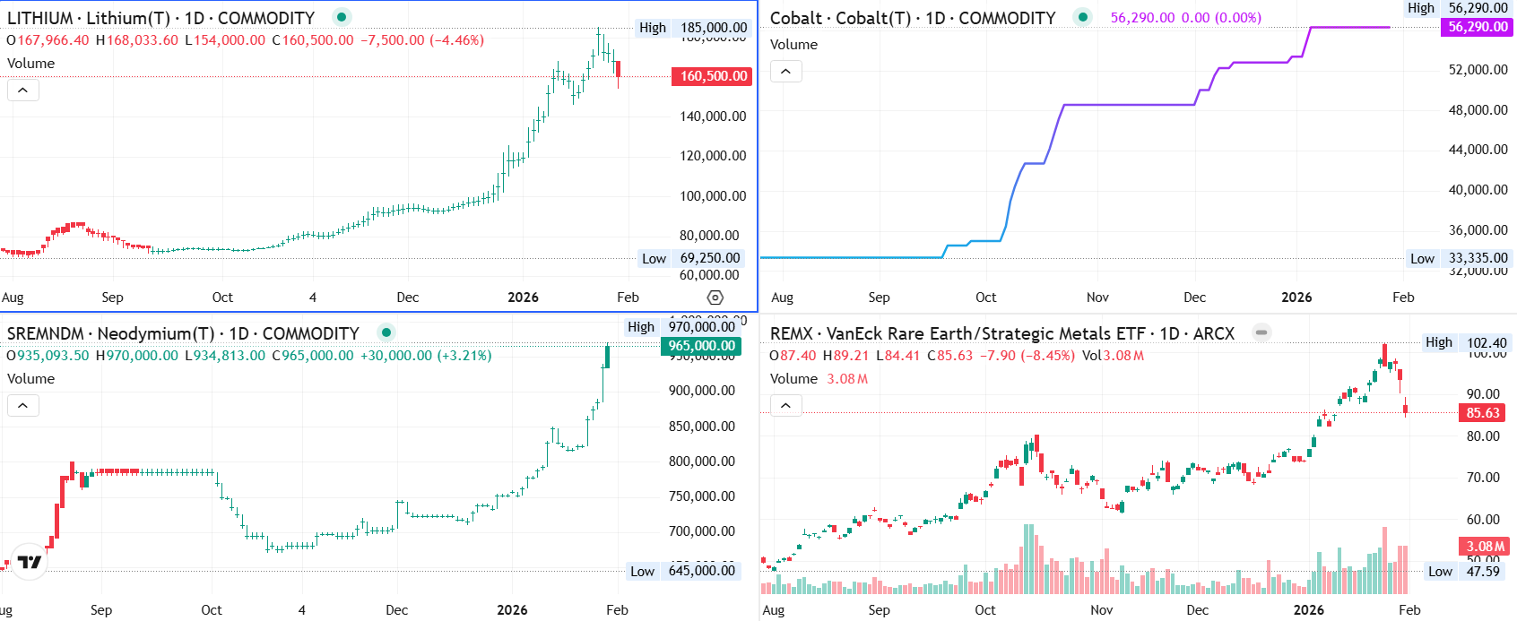 리튬 하락, 네오디늄 상승, 희토류 ETF의 조정이 나타났습니다.