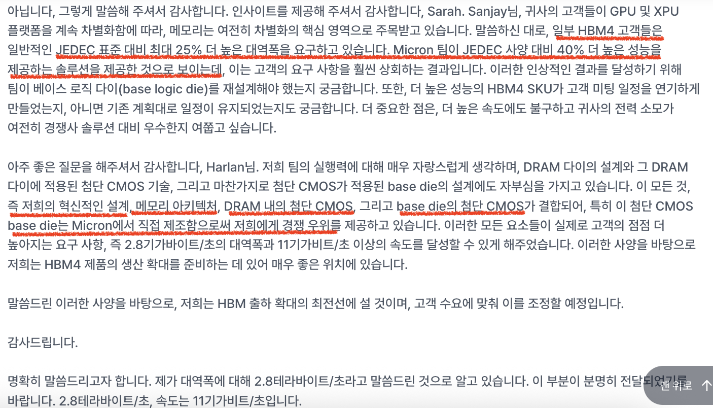 곧 HBM4공급 계약이 나올것이며, 2026년 전체 공급계약도 체결 할 것!