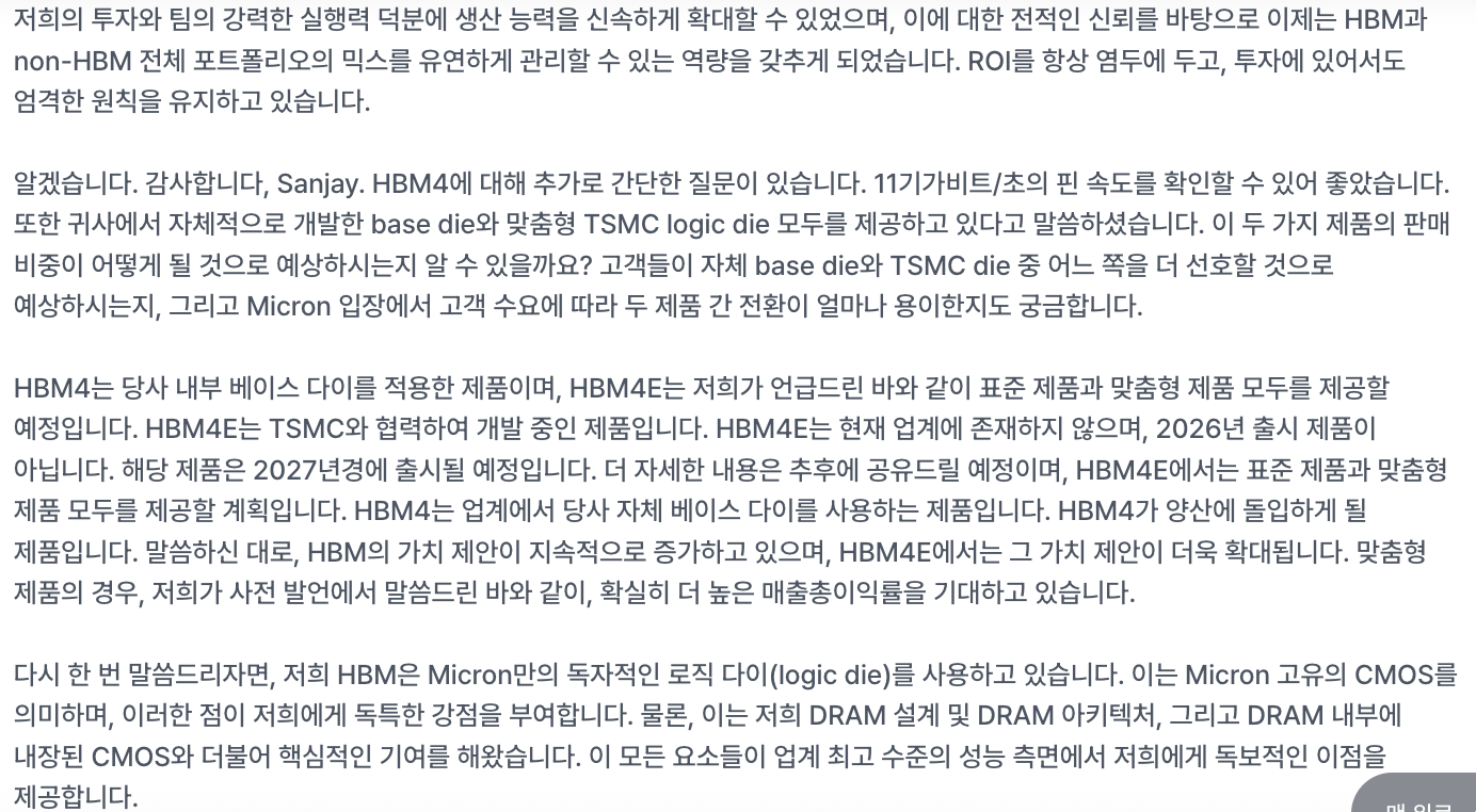 MICRON TECHNOLOGY INC FY2025 Q4 실적발표 컨퍼런스 콜 요약 다시읽기