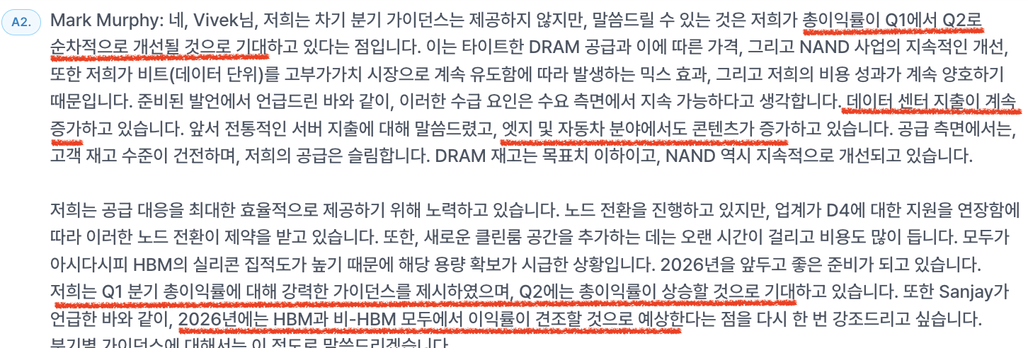 그런데 2026년에는 마이크론의 시장 점유율이 더 올라갈 것이라고 말함.