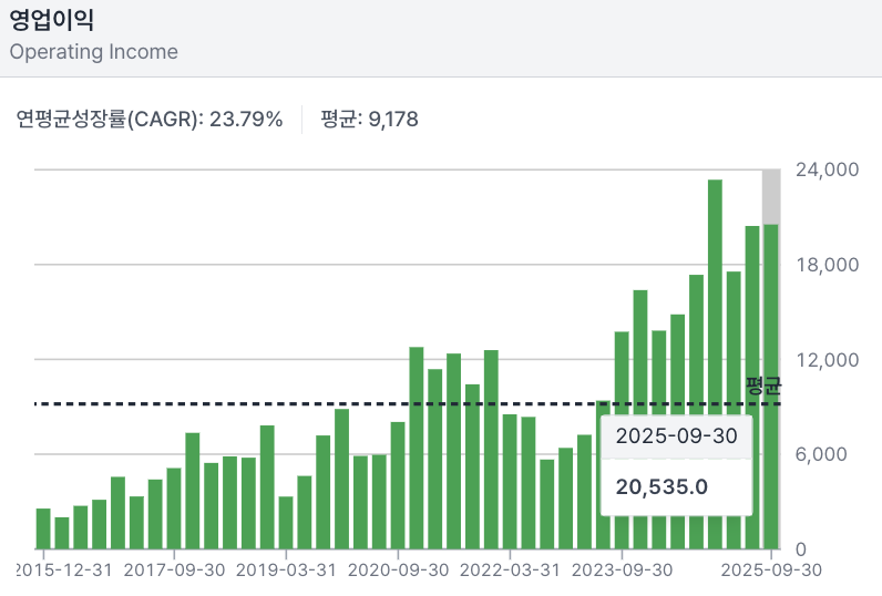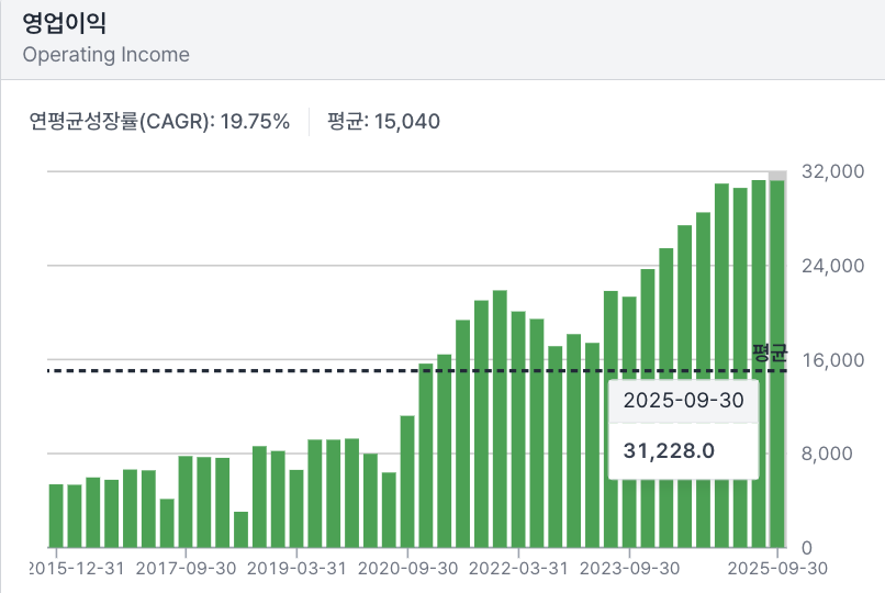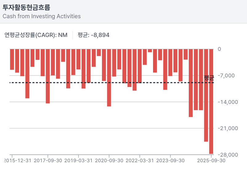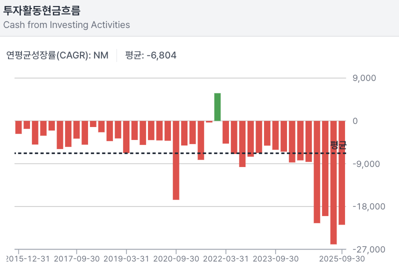 즉, 분기별 영업이익을 넘어선 금액을 투자에 쓰고 있음.