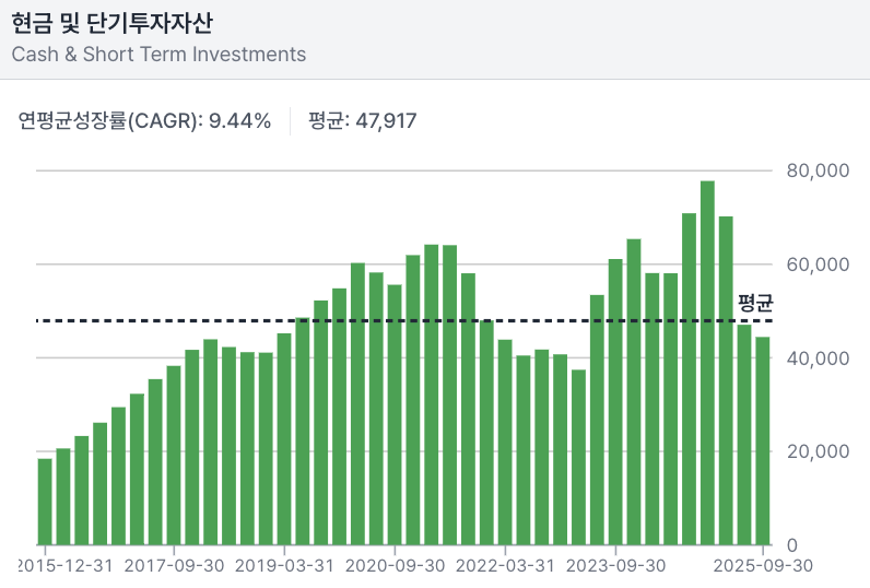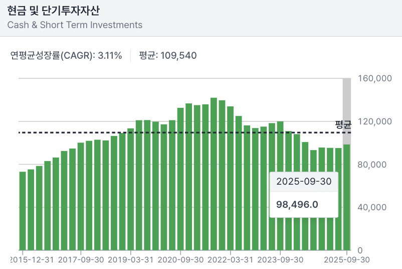 보유 현금은 2개 분기 투자 하고 나면 없는 정도임
