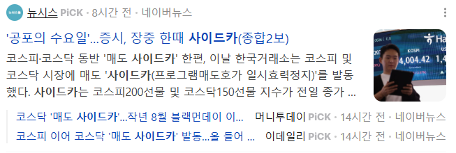 이와 함께 접하게된 뉴스가 코스피 매도 사이드카 발동했다는 기사입니다.