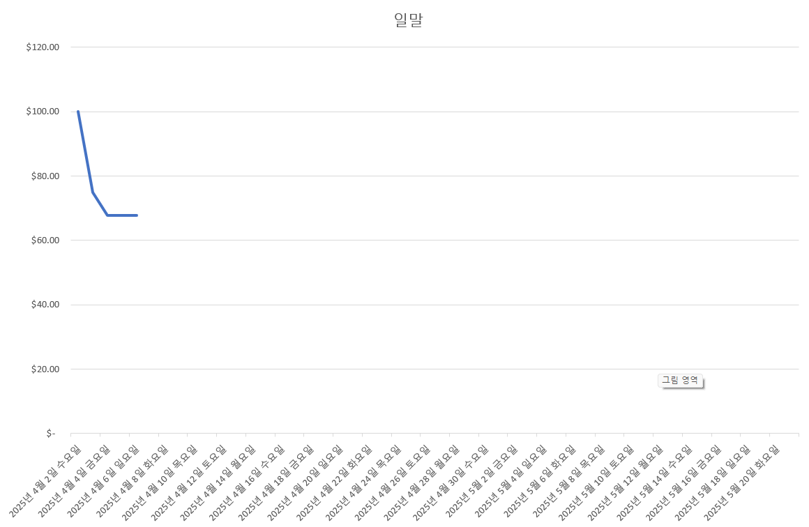 선물 쪽 매매리스크를 10달러로 잡은 후 몇 번 실패하면 손이 안 나간다. 이게 그릇이라는 거겠지. 그리고 그 결과가 위 차트의 수평선 구간들.