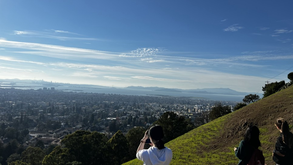 첫 하이킹이었나 그랬다. 코스 이름은 까먹었는데, 가볍게 갈만한 코스라고 스페인 친구들이 주선해줬고, 여기저기 친구가 친구들을 부르고 하다보니 거의 10명 넘는 친구들이 올라갔다. 버클리나 샌프란시스코나 조금만 높은 곳에 올라가면 저 멀리 바다가 바로 보이는 탁 트인 뷰가 맞이해준다. 시야 트인 곳에서 좋은 공기 마시면서 멍때리는거 좋아하는 나한테는 정말 좋은 도시가 아닌가 싶다.