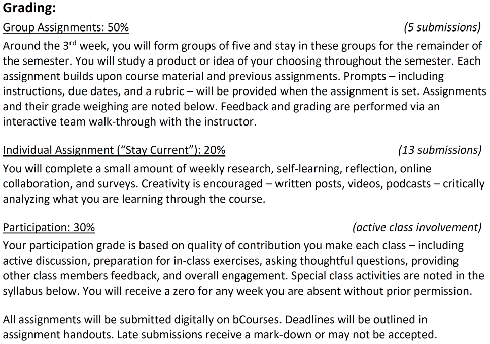 일단 예시로 Product Management의 syllabus와 group assignment 요구조건을 들고왔다.