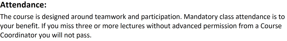 일단 출석을 중요시 여기는 코스도 있고, 아닌 코스도 있다. 수업 중에 전혀 출석을 부르지 않아도 TA가 전부 체크하고 반영하기도 한다.