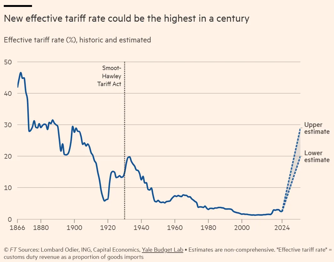 월스트리트 은행들은 미국의 평균 관세가 수십 년 만에 최고 수준으로 상승할 것이라고 추정했습니다. 상호 관세는 4월 9일에 발효될 예정입니다.