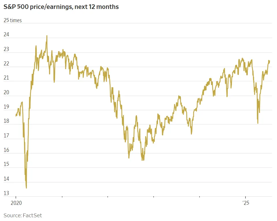 이익 개선은 주식 상승에 대한 주요 우려 중 하나를 완화하는 데도 도움이 될 것입니다. 즉, 주가가 기업 수익 대비 과도하게 상승했다는 우려입니다. S&P 500 기업들의 주식은 최근 향후 12개월 예상 이익의 22.4배에 거래되었는데, 이는 10년 평균인 18.8배보다 높은 수치입니다.