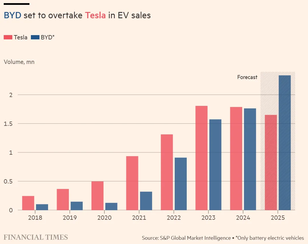 How BYD caught up with Tesla in the global EV race - FT