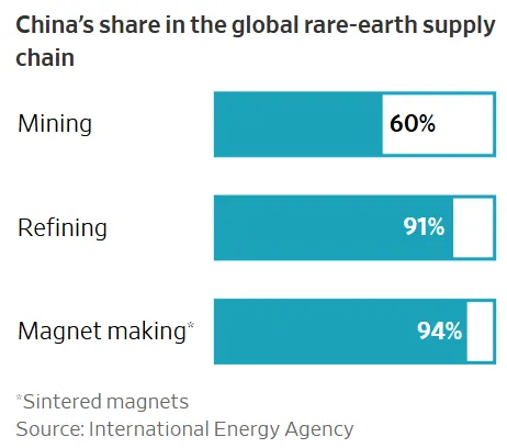 In recent months, China has used its chokehold over 90% of the world’s rare-earth magnets to cut off access to Western companies, rattling industrial giants such as Ford and Tesla and forcing the U.S. to the table for trade talks.