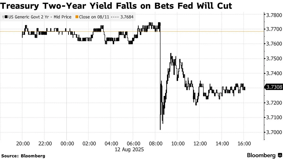 All major US equity indexes climbed more than 1%, with the S&P 500 and the Nasdaq 100 hitting all-time highs. The Russell 2000 of smaller firms jumped 3%. While an initial rally in Treasuries faded, money markets priced in an about 90% chance of a Fed reduction next month. Two-year yields, more sensitive to imminent policy moves, slid four basis points to 3.73%. The dollar fell.