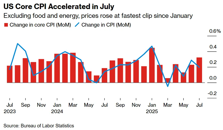 Underlying US inflation accelerated in July though the cost of tariff-exposed goods didn’t rise as much as feared, boosting expectations that Federal Reserve officials will lower interest rates when they meet next month.