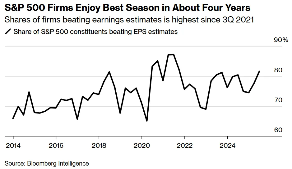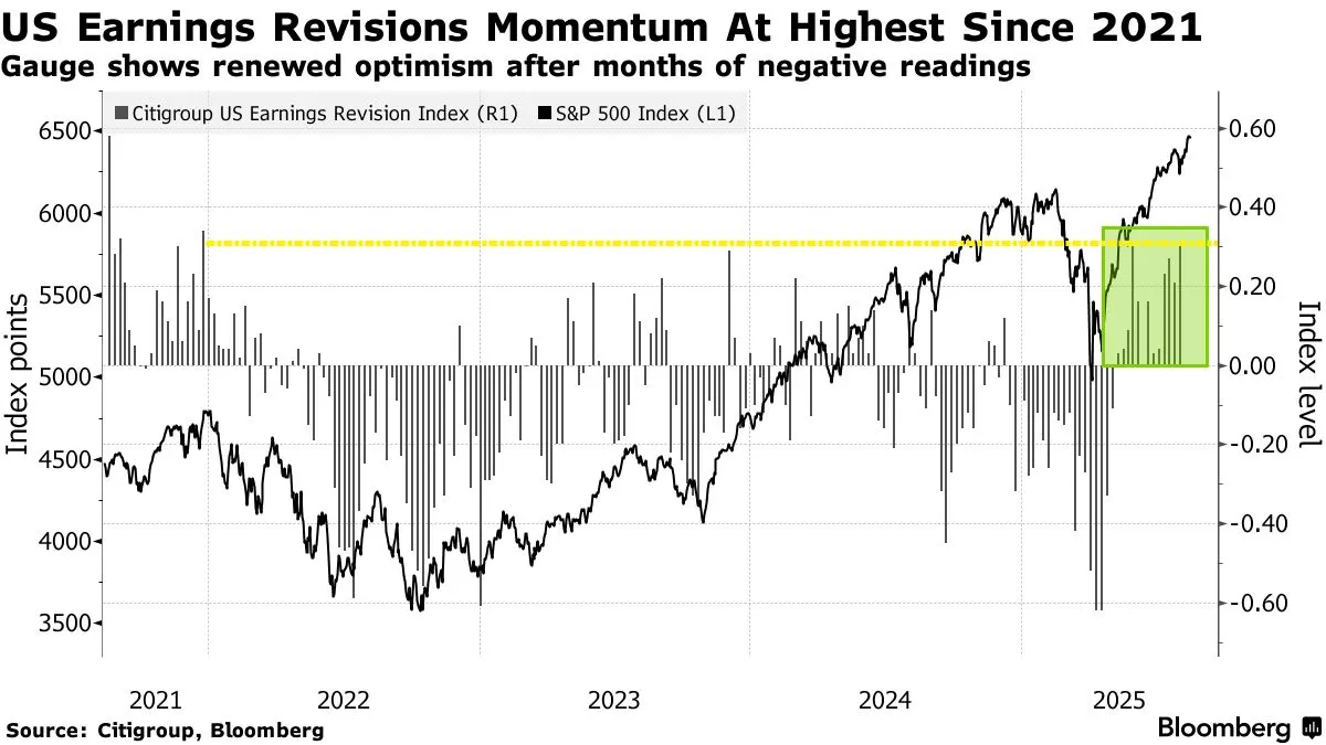 Analysts are ratcheting up earnings estimates for the current quarter at the swiftest pace in nearly four years. A Citigroup Inc. index that tracks the relative number of US earnings-per-share estimate upgrades versus downgrades is at its highest since December 2021.