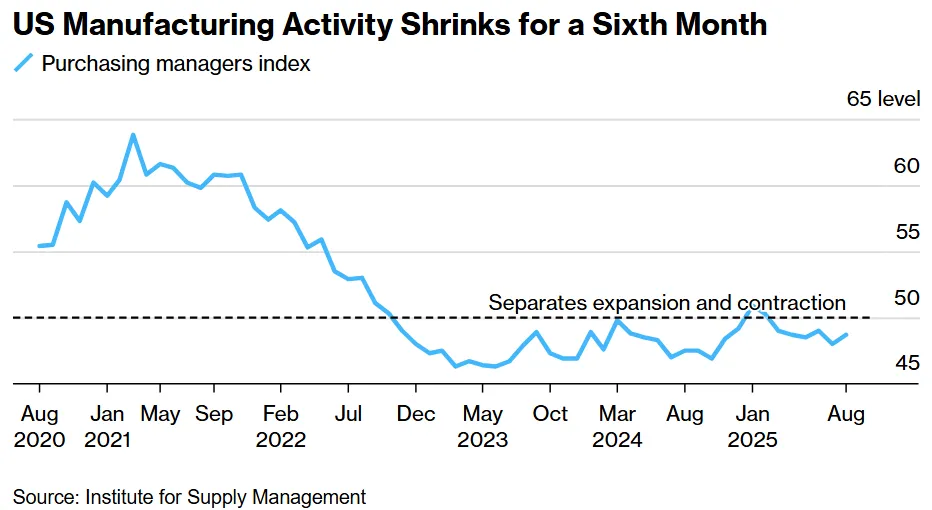 경제적 측면에서, 8월 미국 제조업 활동은 6개월 연속으로 위축되었는데, 이는 높은 수입 관세로 인해 제조업이 여전히 침체되어 있음을 보여주는 생산량 감소가 원인이었습니다.