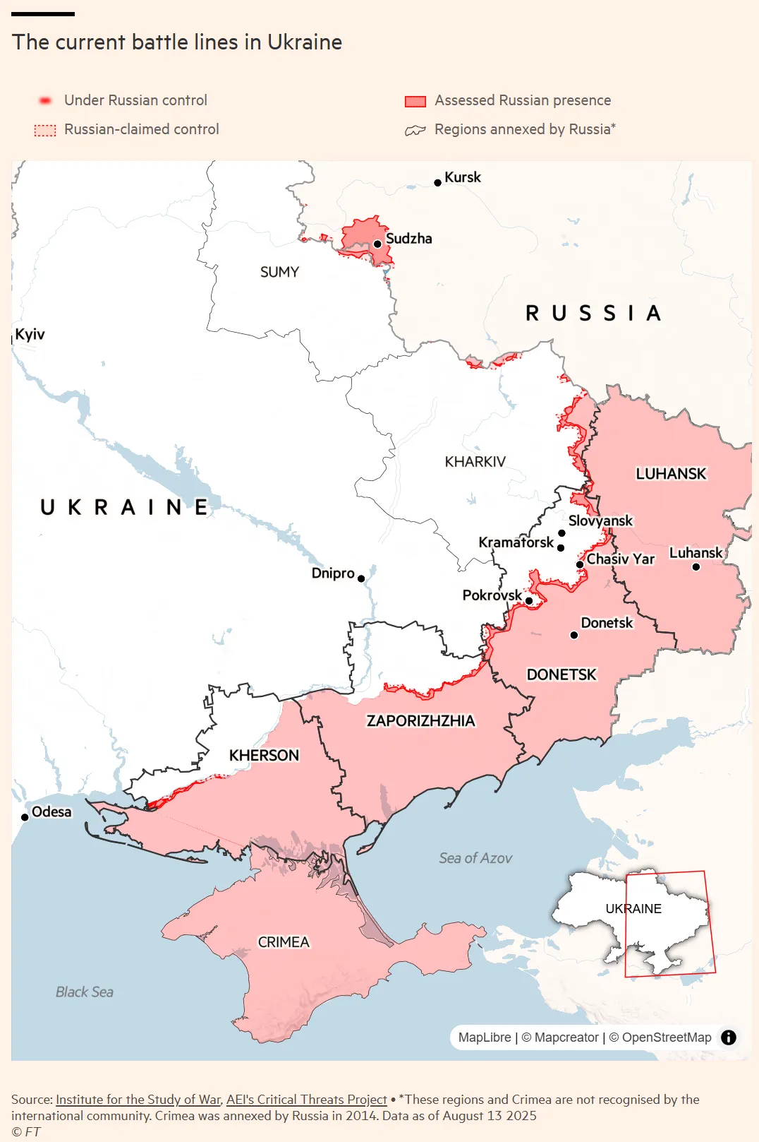 Putin’s territorial demands appeared to have hardened since April, when he told Trump’s special envoy Steve Witkoff that Russia could freeze the entire front line if its “root causes” were addressed.