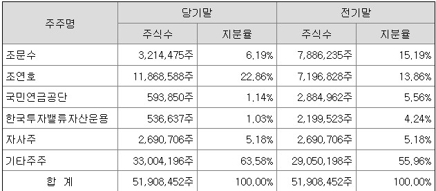 23๋ ๋์๋ '์กฐ๋ฌธ์'๋์ด 15.19%๋ก ์ต๋์ฃผ์ฃผ ์์ง๋ง