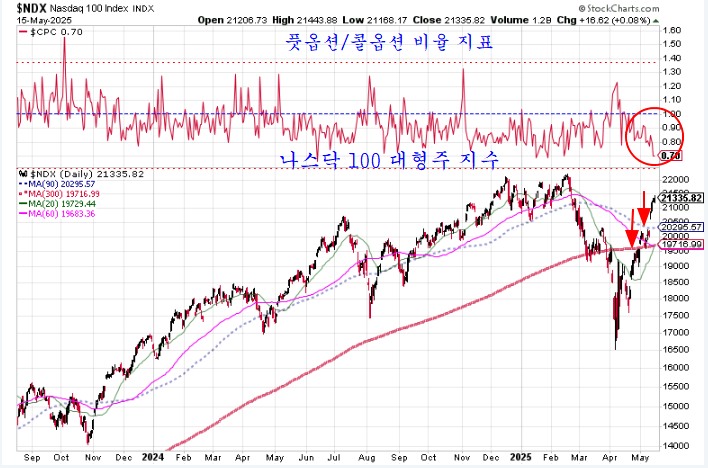 오늘 옵견 만기가 지나면 콜옵션이 추동하는 상승의 힘이 사라지므로 주가는 다시 하락추세로 움직이기 쉬워, 미국의 기술 대형주는 다시 매도해야할 시점이 되어 있다.