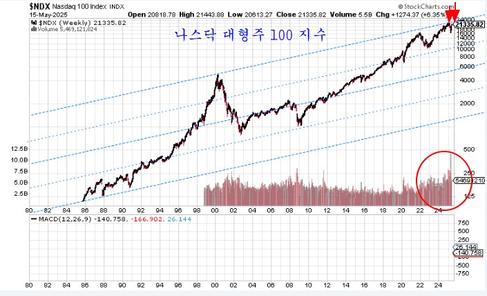 미국과 중국이 최소 90일간 관세를 115%씩 낮춰 미국은 30%, 중국은 10%를 유지하기로 하면서 미국의 주가지수는 큰 상승으로 마감하였다.