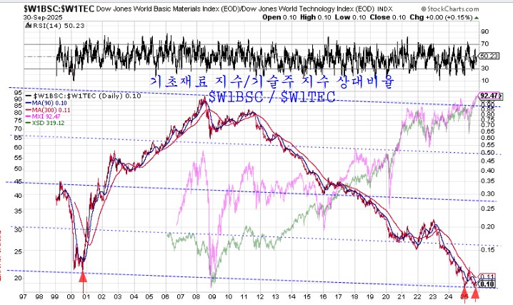 특히 2021년 중국이 강력한 부동산 및 건설업 규제로 부동산 업종이 급격한 침체로 진입하면서 기초재료섹터의 장기 침체가 시작을 알리는 하락이 되었으나, 2025년말은 장기 침체 후 중국의 부동산과 제조업 경기가 회복되고, 유럽이나 미국 등 선진국이 3년 이상 침체된 제조업이 점차 회복세가 이어지고 있다는 점에서 이러한 추세 전환은 장기 추세로 발전하기 쉽다.