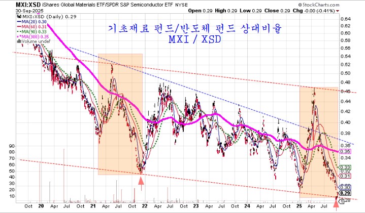 3. 기초재료 섹터 펀드(MXI)와 반도체(XSD)펀드 비율