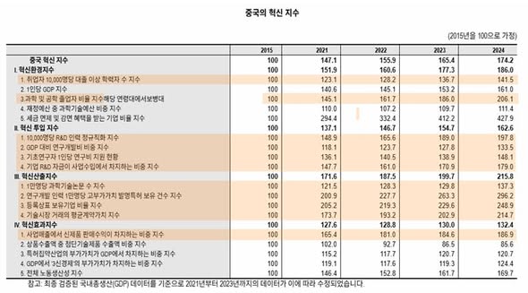 중국은 국가경제 성장의 지표로 GDP와 같은 양적인 지표를 관리하는 대신 질적인 혁신지표를 개발하여 관리하고 있다.