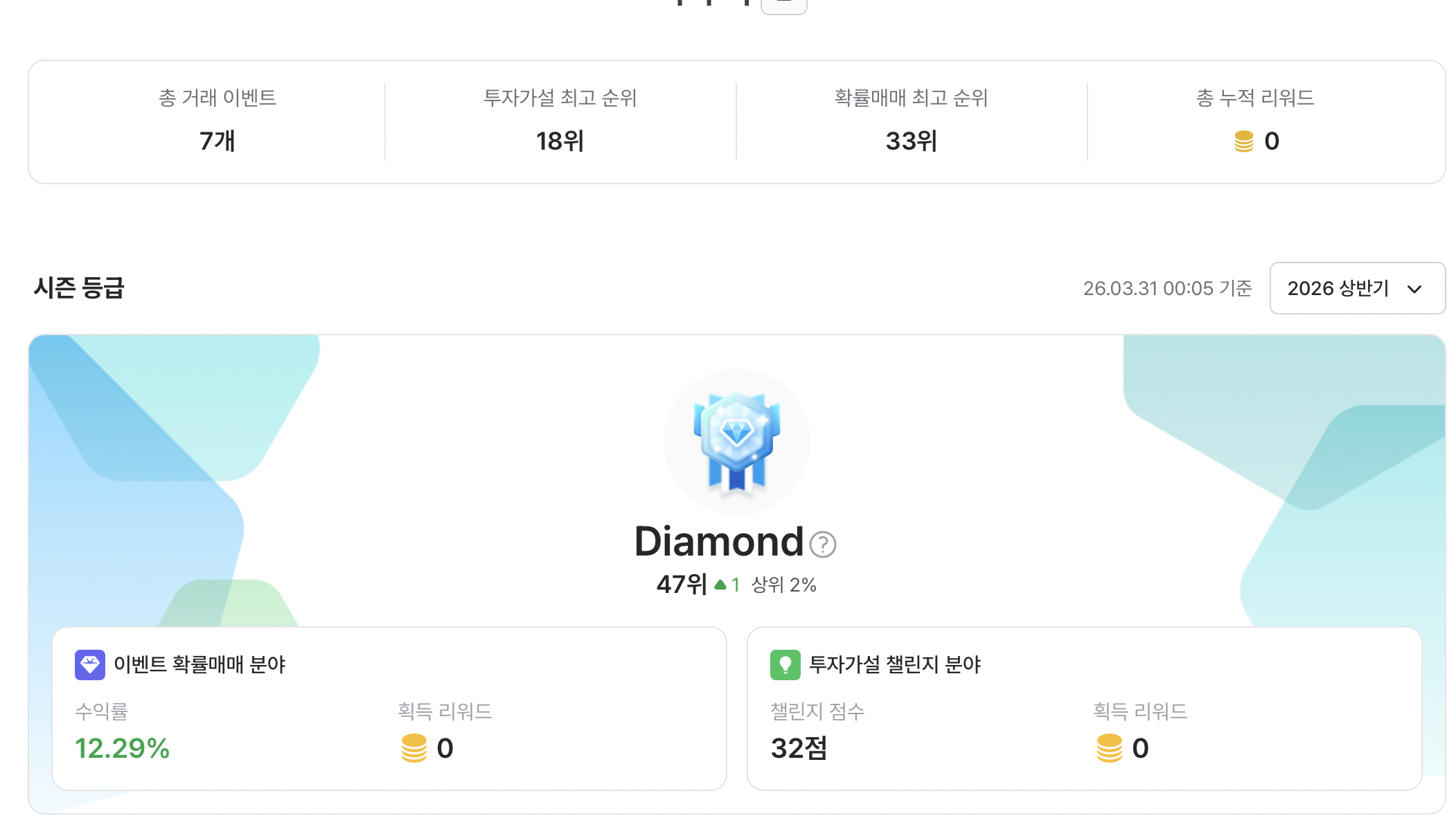 투자가설 챌린지나 이벤트 확률매매를 거의 아예 안하는데, 올만에 들어가보니 50위 안에 있네요.. 뭐지? 오류인가..