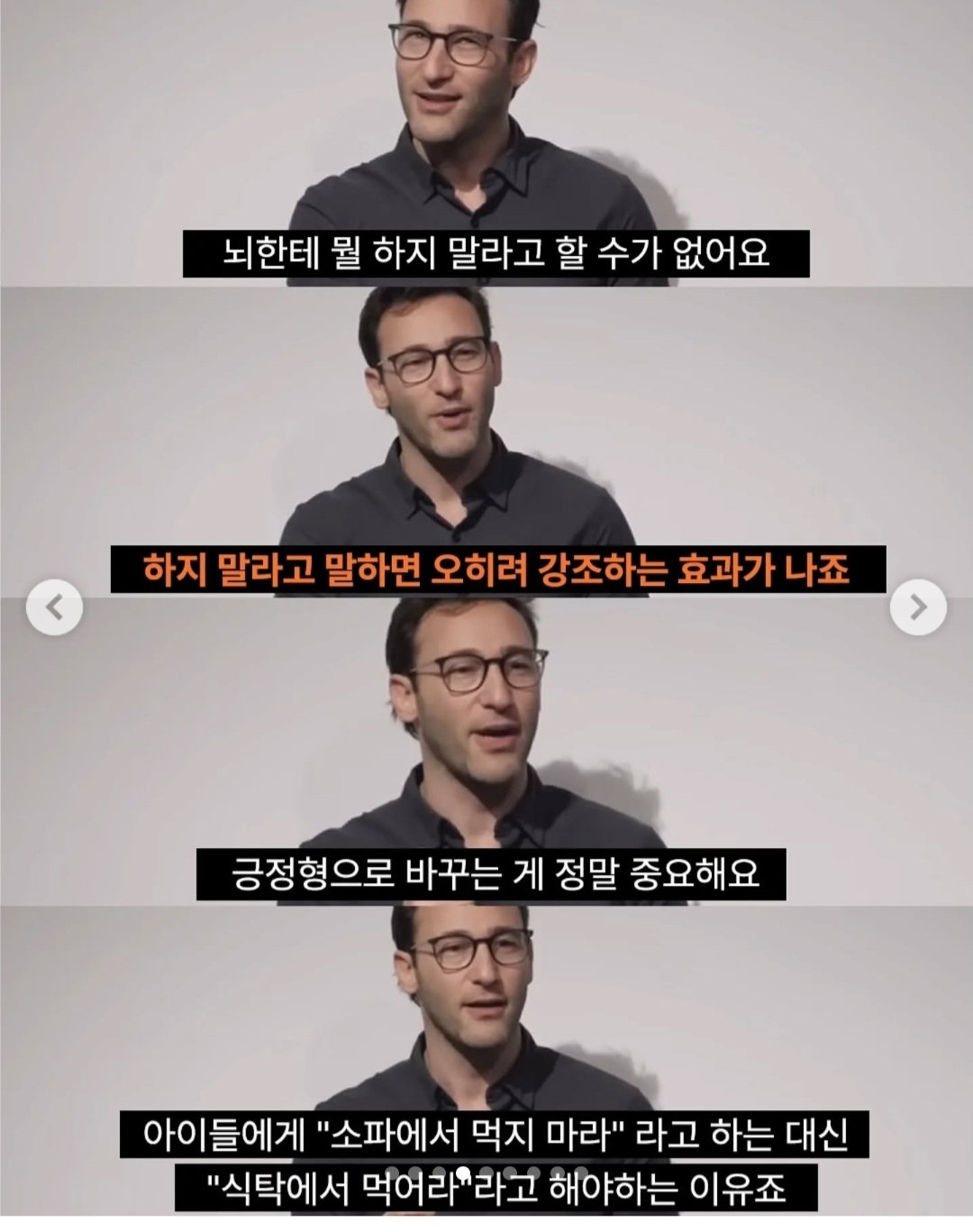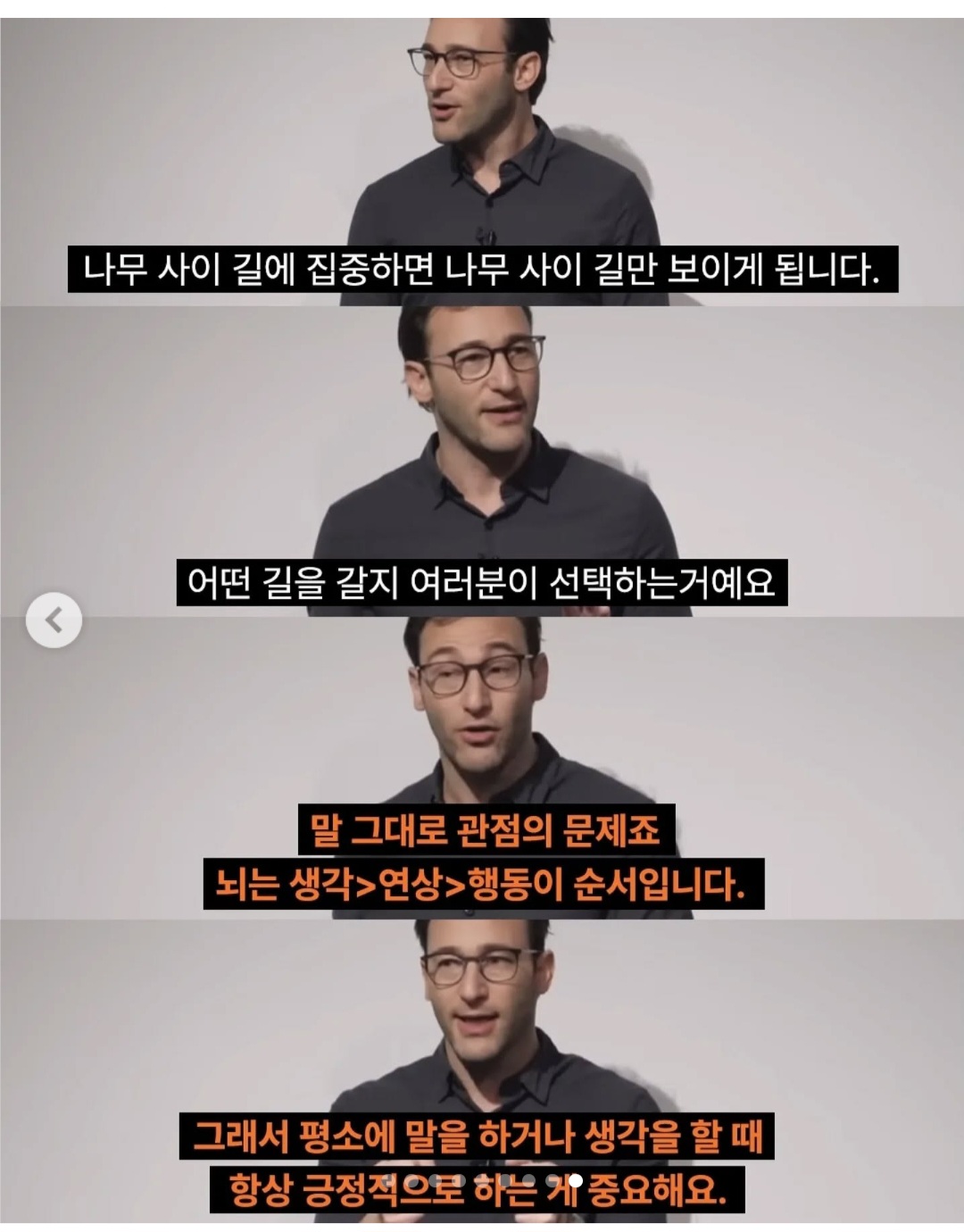정말 좋은 인사이트인 것 같습니다. 부정은 소화할 수 없다, 긍정적으로 바라보는 것이 중요하다는 단순한 이야기를 너무나 쉽게 설명해주는군요…!