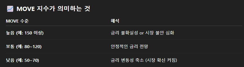 VIX가 주식시장의 변동성 지표라면, MOVE는 미국 국채 시장의 VIX라고 볼 수 있다.