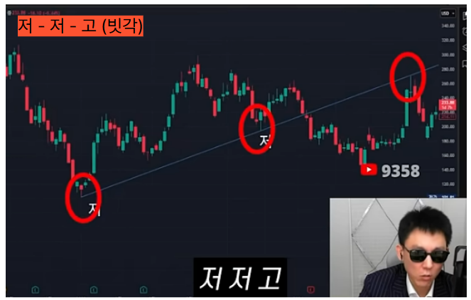 [저-저-고 ] 과정에서 마지막 고점이 형성되면 빗각이 완성되었다고 본다.