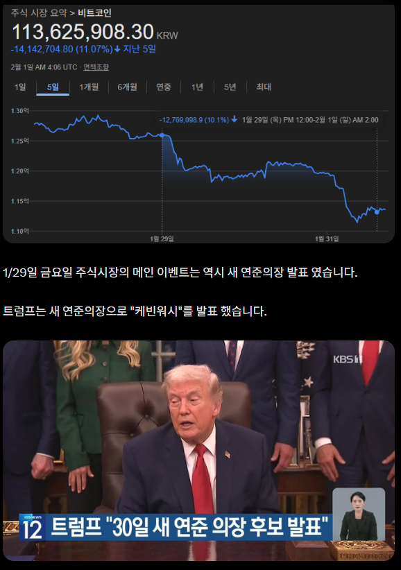 1/29일 금요일 주식시장의 메인 이벤트는 역시 새 연준의장 발표 였습니다.