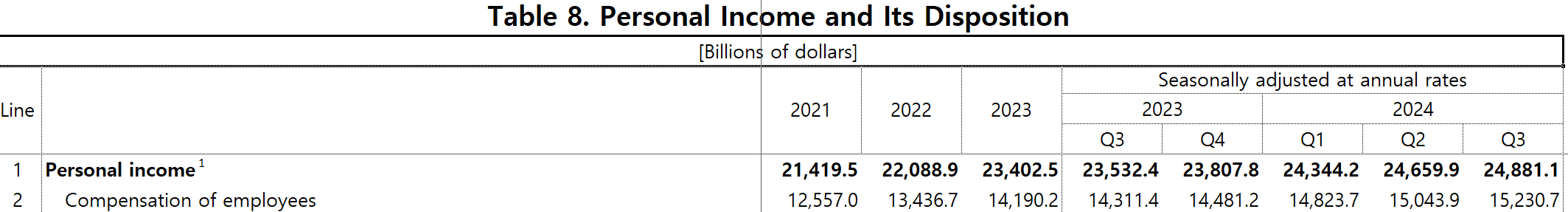 personal income은 yoy로 4.31% 증가 했습니다. yoy로 소득이 물가보다 더 높은 상황 입니다. 미국의 개인소비가 강한 이유라고 생각합니다.